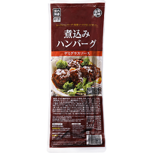 豚肉と牛肉の旨味、タマネギの甘味が楽しめる、ふっくらとした食感の煮込みハンバーグです。デミグラスソースに赤ワインや香味野菜を加えることで芳醇(ほうじゅん)な香りを引き出しました。